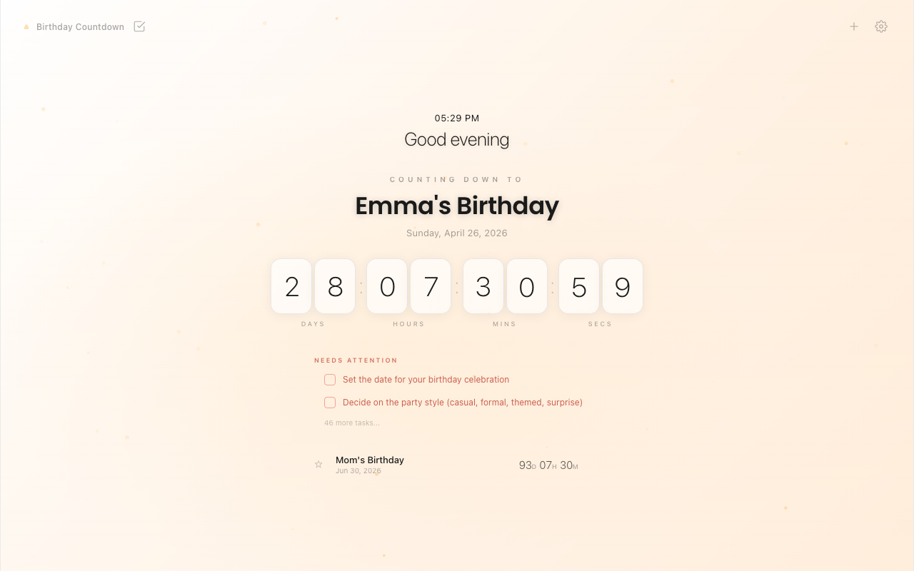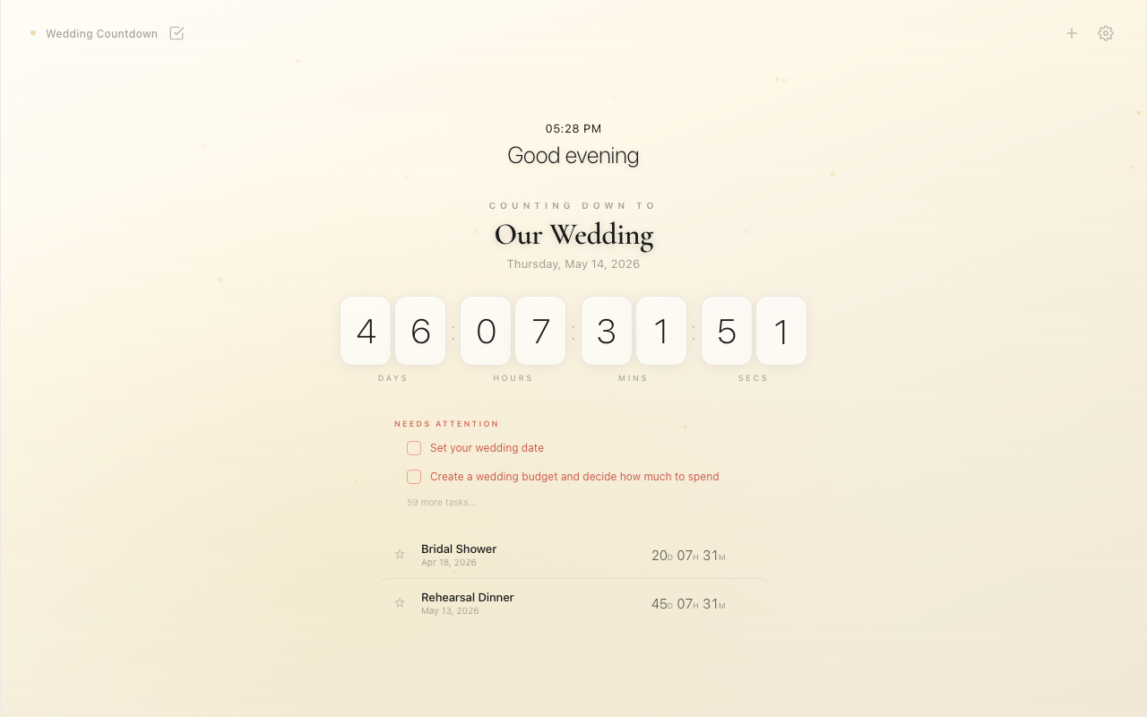 Every countdown lives in your Chrome account using built-in sync. No analytics, no tracking, no ads. Pick your event above and install in seconds.